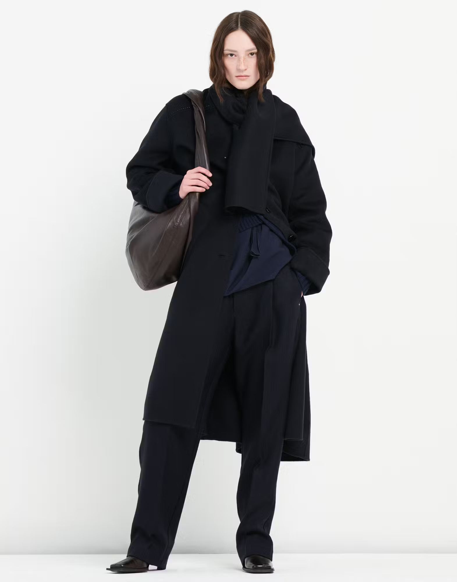 Cappotto in lana con maxi sciarpa