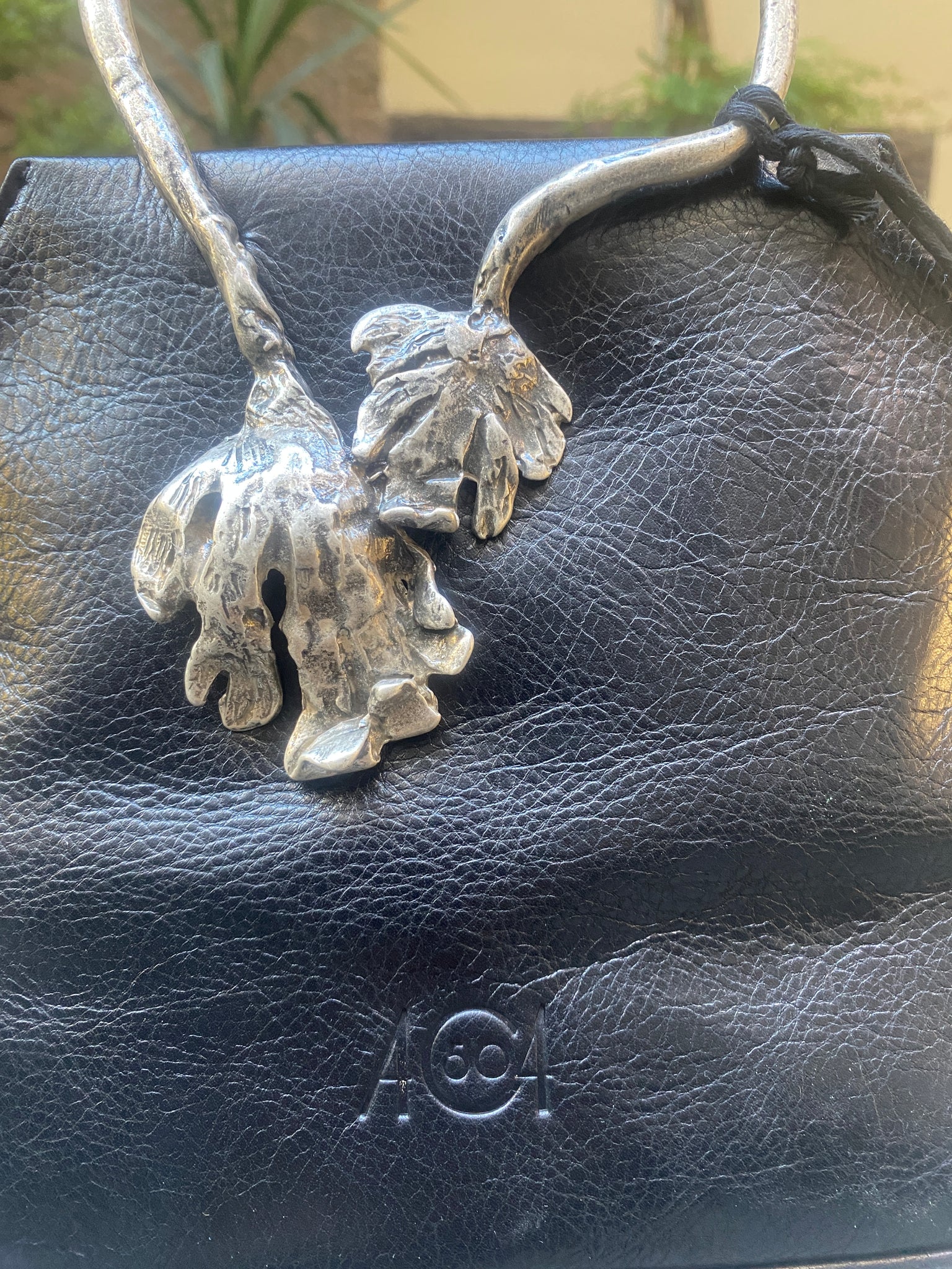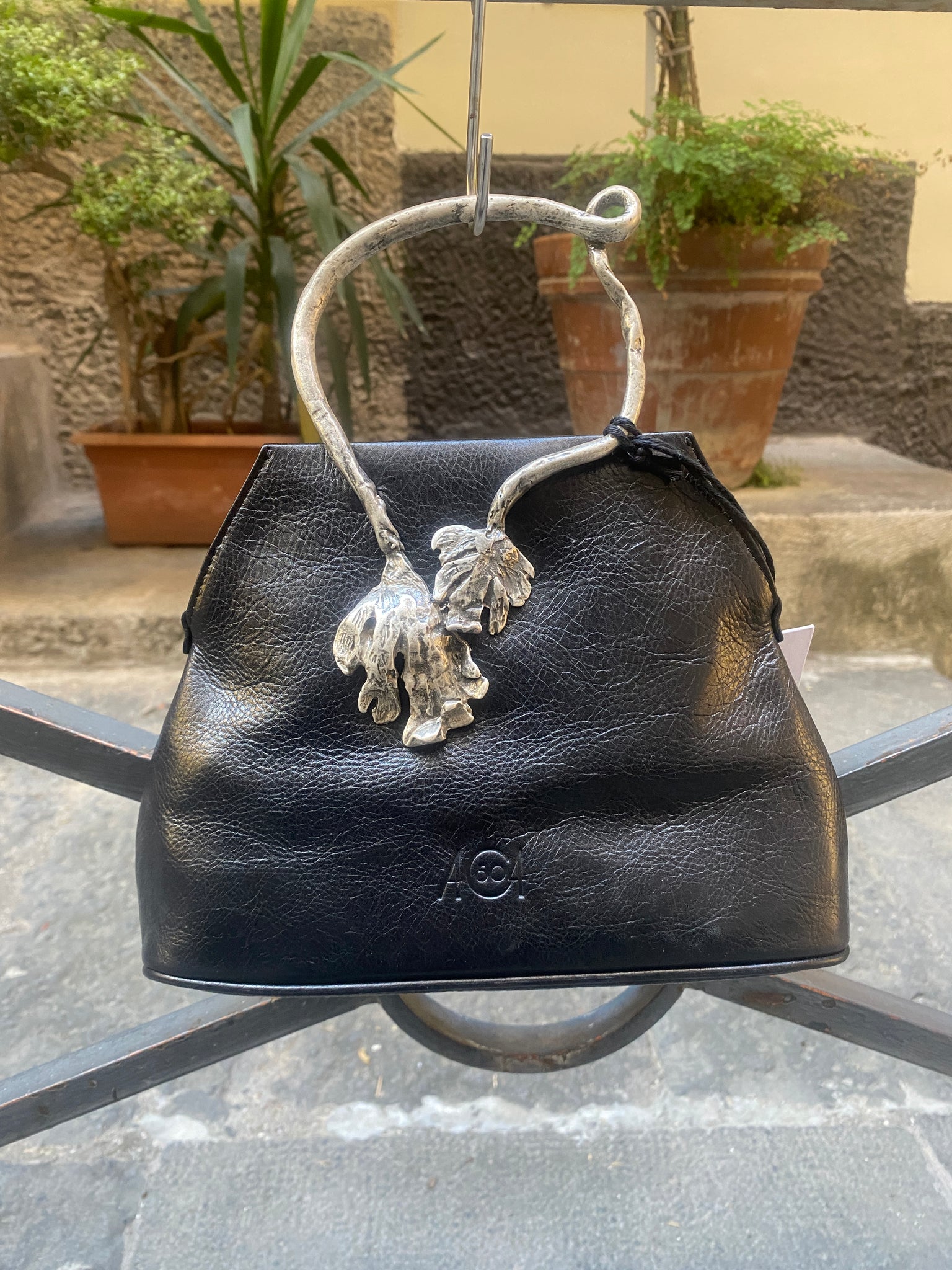 Mini Bag compatta in pelle con manico sagomato a foglia