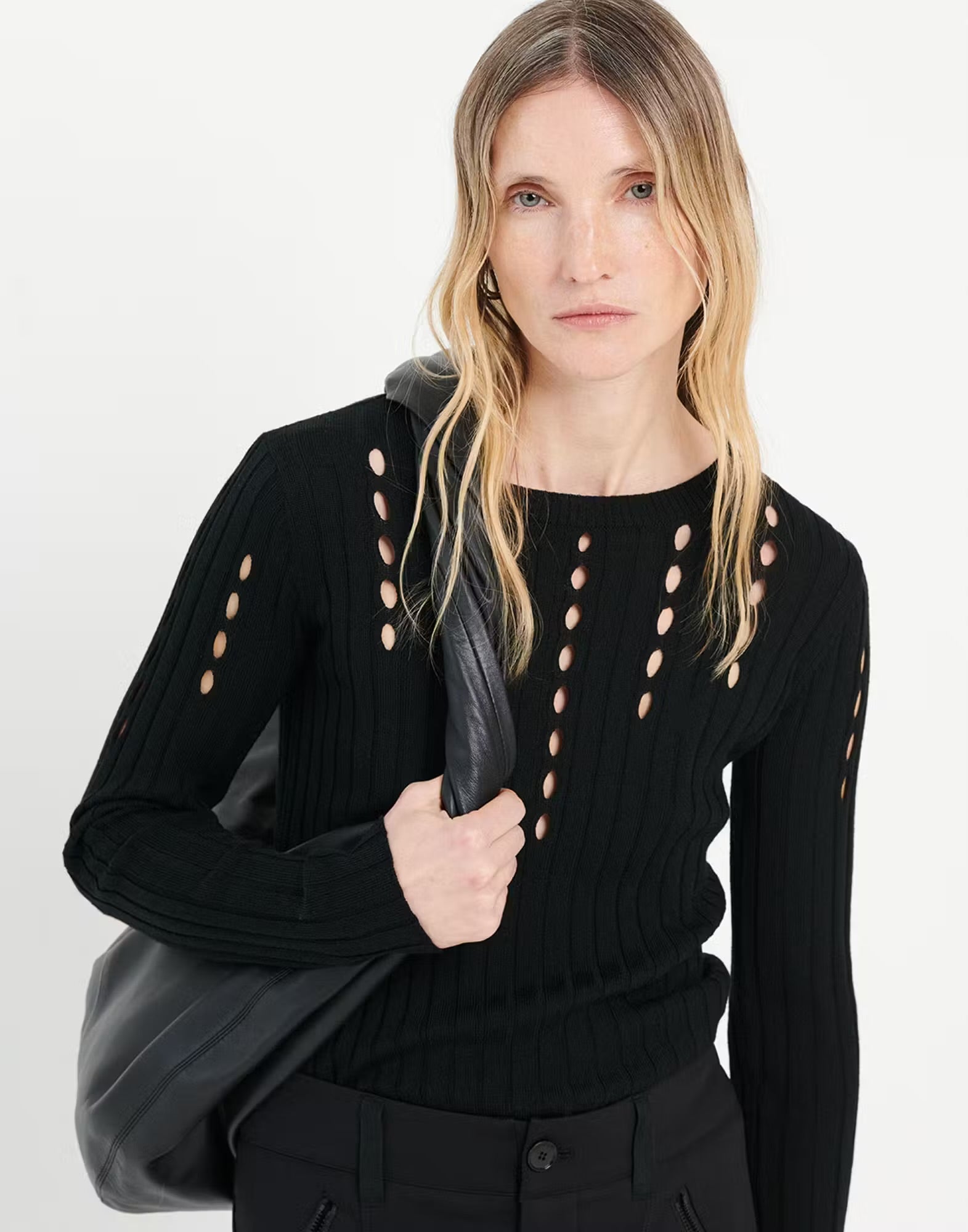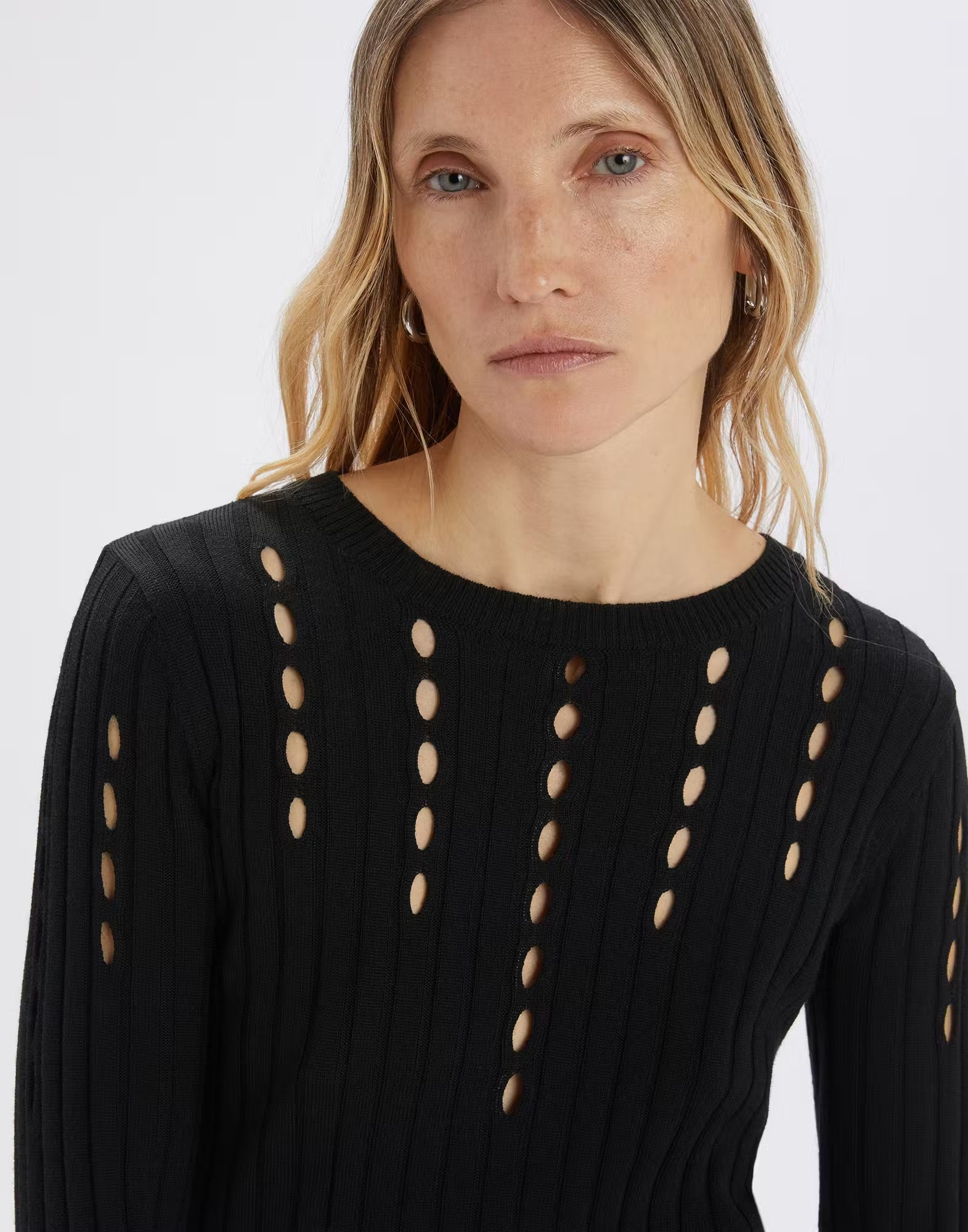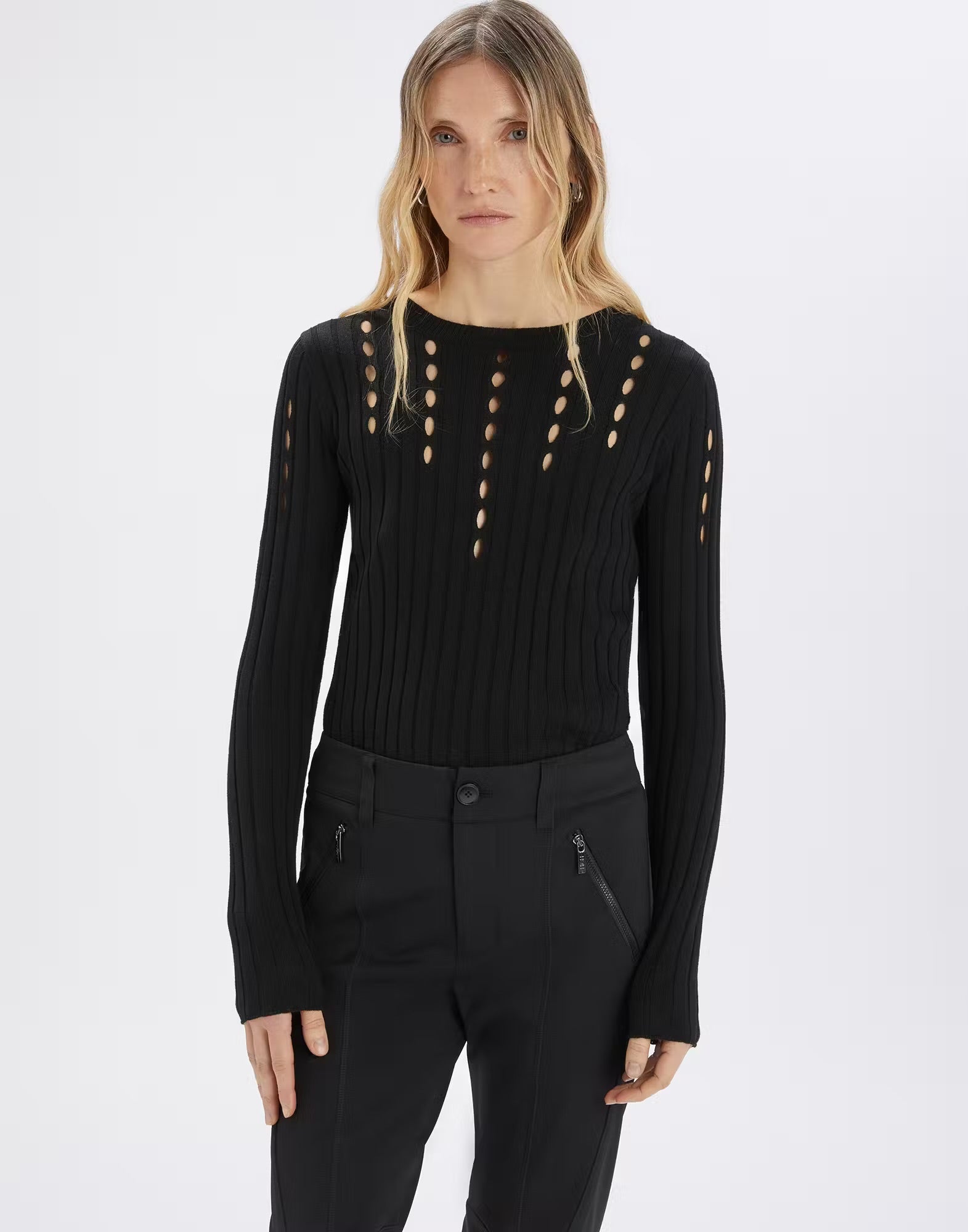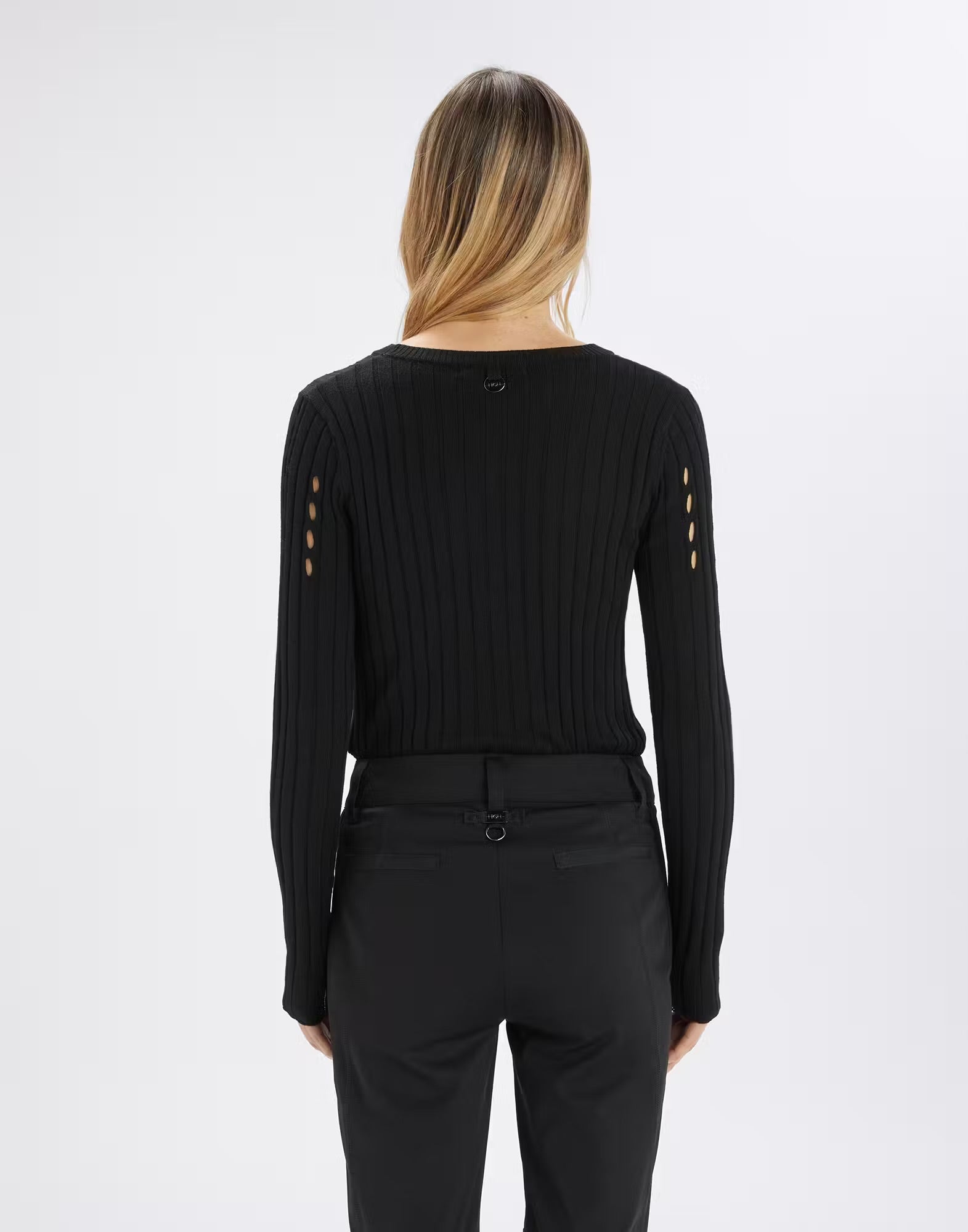 Maglia girocollo a coste con aperture effetto cut-out